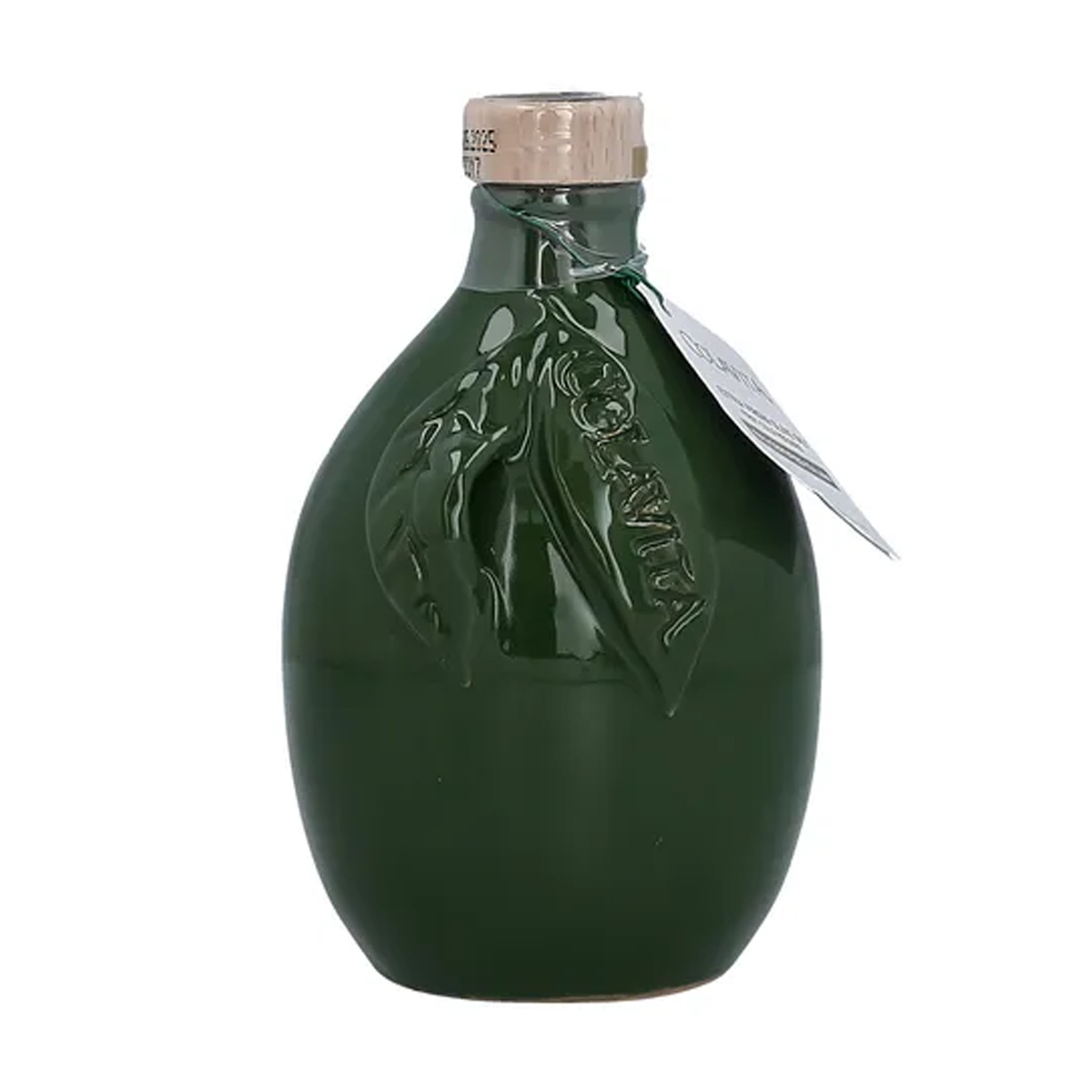Além da qualidade do azeite, o produto se destaca pela sua garrafa de cerâmica artesanal, disponível nas cores verde, lilás e preto, que confere charme e elegância à mesa, protegendo o azeite da luz e garantindo maior conservação de suas propriedades.