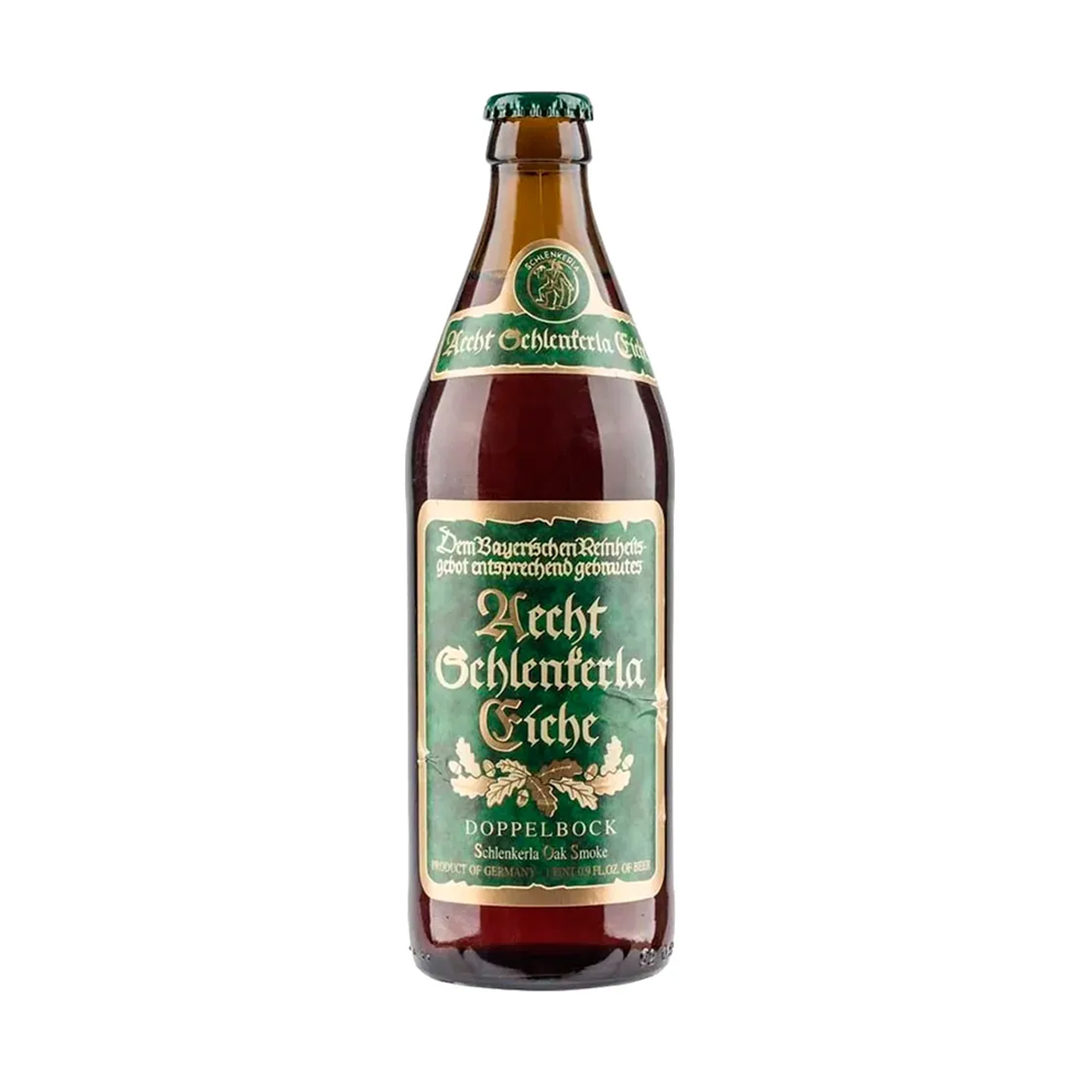 A Cerveja Aecht Schlenkerla Eiche 500ml é uma cerveja alemã especial e de caráter intenso, produzida na cidade histórica de Bamberg pela tradicional cervejaria Schlenkerla, referência mundial em cervejas defumadas. Nesta versão singular, o malte é defumado com madeira de carvalho (Eiche), resultando em um perfil mais seco, robusto e complexo quando comparado às Rauchbiers clássicas.