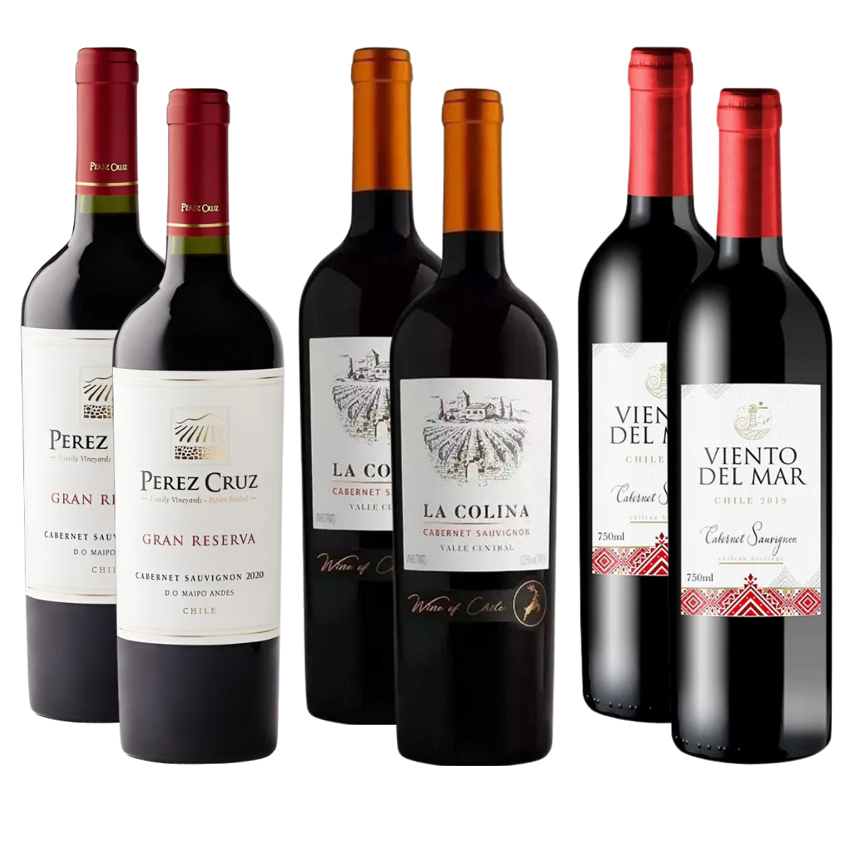 Uma seleção equilibrada de Cabernets chilenos que revela diferentes estilos da uva mais clássica do país. Com rótulos que vão do meio seco ao seco, o kit entrega vinhos com boa estrutura, aromas de frutas maduras, notas herbáceas elegantes e taninos macios — perfeitos para o dia a dia ou para acompanhar carnes, massas e queijos.