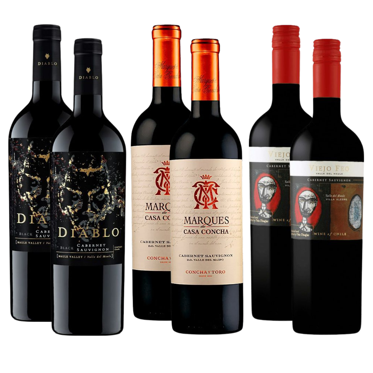 O Kit 6 Vinhos Chilenos Cabernet Sauvignon Premium reúne rótulos de destaque para quem aprecia intensidade e elegância. O Diablo Black traz perfil moderno e envolvente, o Marques de Casa Concha entrega profundidade e estrutura clássica, enquanto o Viejo Feo Reserva oferece equilíbrio e fruta madura. Uma seleção perfeita para explorar diferentes expressões do Cabernet chileno.