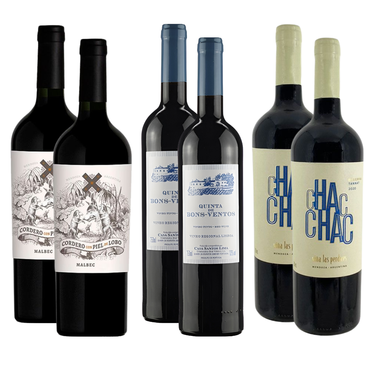 Pensado para acompanhar carnes grelhadas e momentos descontraídos, este kit reúne rótulos encorpados e cheios de sabor. O Cordero Malbec traz fruta madura e maciez, ideal para cortes suculentos; o Quinta de Bons Ventos acrescenta equilíbrio e versatilidade à mesa; e o Chac Chac Reserva Tannat entrega estrutura, taninos firmes e intensidade, perfeito para churrascos mais robustos. Uma seleção completa para valorizar cada brasa e cada taça.