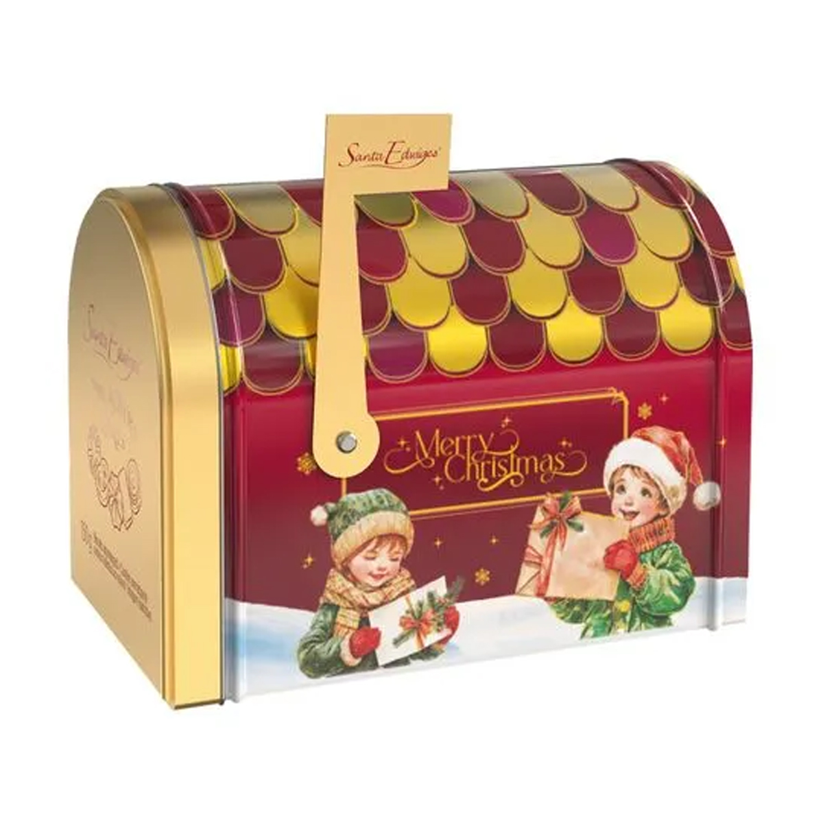 A Lata Mail Box com Butter Cookies Santa Edwiges é uma edição especial que une tradição natalina, sofisticação e sabor irresistível. Em formato de caixa de correio decorada, com design festivo e delicados detalhes dourados, ela traz deliciosos biscoitos amanteigados, conhecidos por sua textura leve, crocante e sabor inconfundível.