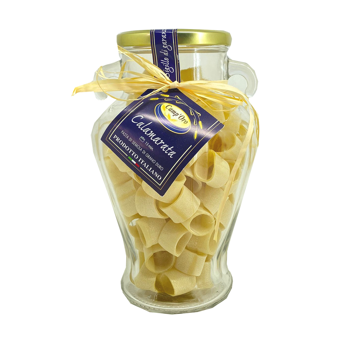 A Massa Calamarata em Vaso Camp'Oro 300g é uma massa artesanal de alta qualidade, feita com ingredientes selecionados para garantir sabor autêntico e textura perfeita. Seu formato tradicional italiano, em anéis largos que lembram anéis de lula, é ideal para pratos recheados, cozidos e gratinados, proporcionando sofisticação e criatividade às receitas.