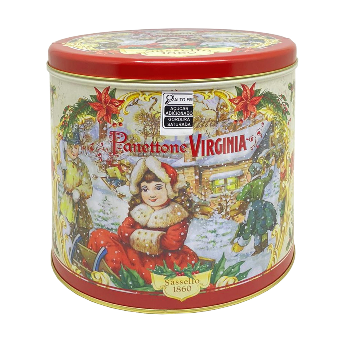 O Panettone Tradicional Lata Bege/Vermelha Virginia 1kg é a expressão máxima da tradição e elegância natalina italiana. Produzido com fermentação natural e ingredientes de altíssima qualidade, apresenta uma massa macia, úmida e delicadamente amanteigada, enriquecida com frutas cristalizadas e uvas-passas selecionadas, que garantem equilíbrio perfeito entre doçura e textura.
